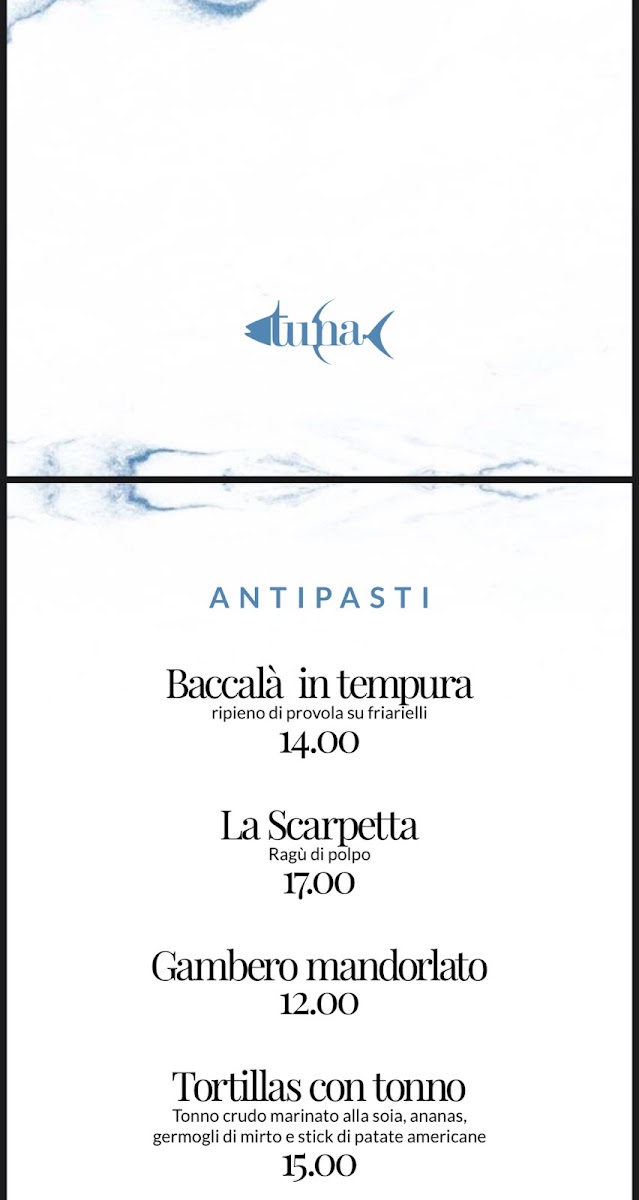 Tuna Restaurant Menu